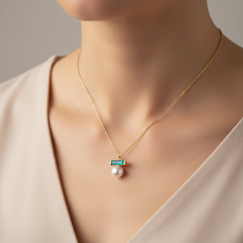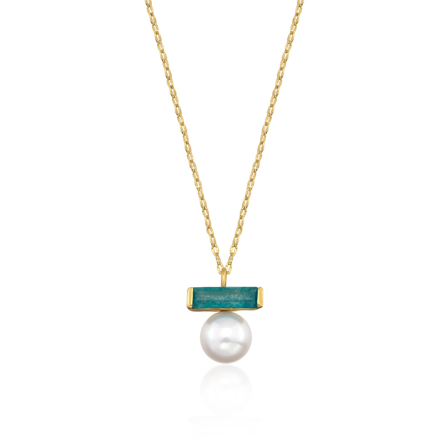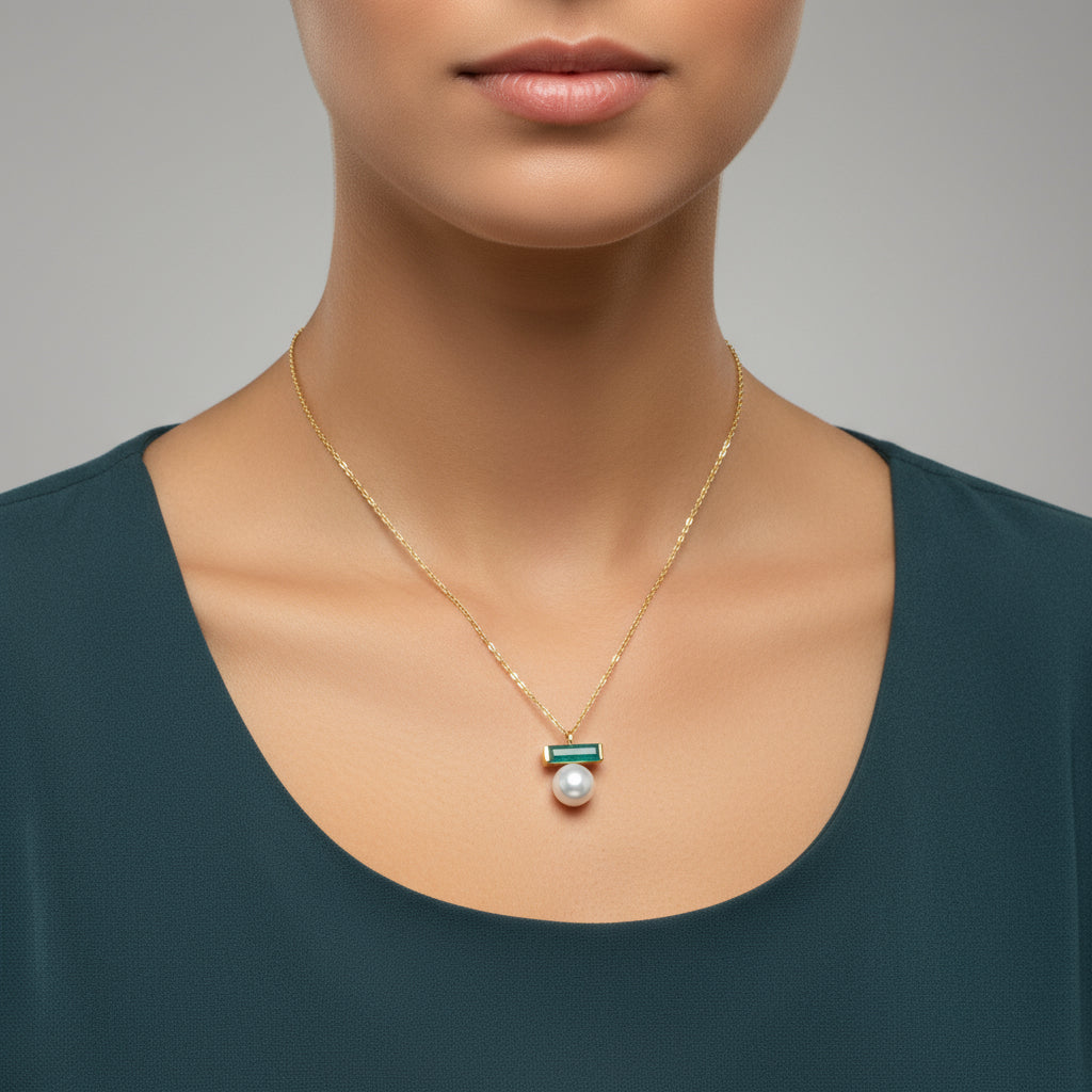 Introducing our elegant necklace, meticulously crafted from 18kt gold plated brass. This versatile piece features a delicate, removable Jade and pearl pendant, adding a touch of sophistication to any ensemble.