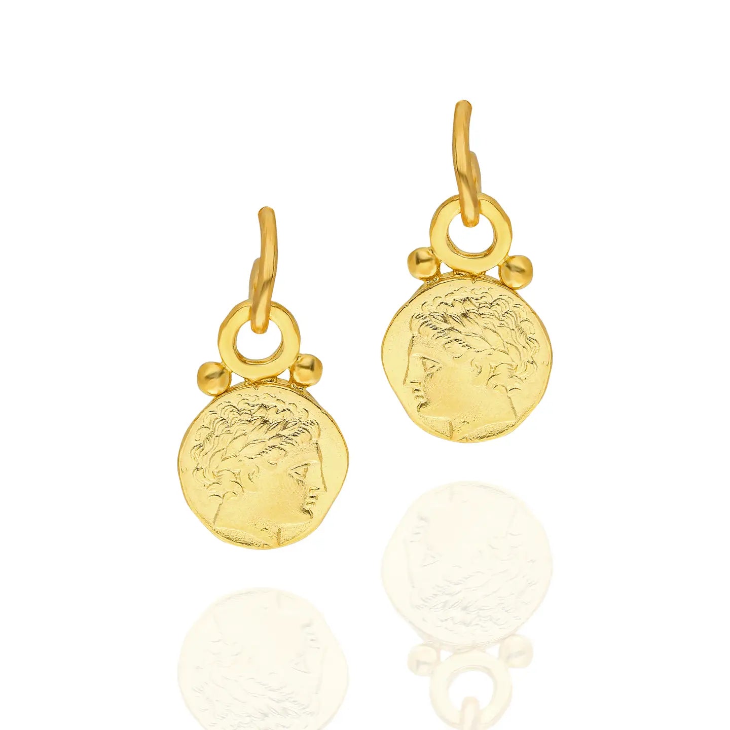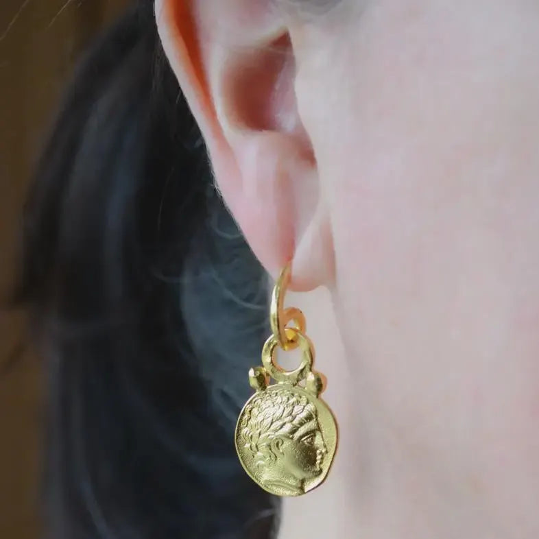 These earrings have a replica of a Roman coin. Just like real ones, these are not perfectly round. Great details.